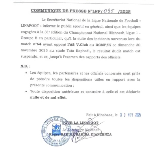 SPORT : Le Stade Kashala Bonzola retrouve une lueur d‘espoir ! 24 Janvier 2026Ce mercredi 21 janvier 2026, Une réunion préparatoire avec l’ensemble des préfets des écoles secondaires de sa juridiction. La rencontre s’est déroulée à 11 heures locales, au siège de l’Institut Bupole, dans le territoire de Demba. Présidée par le Sous-PROVED, Sylvain Ciambula Ntengu, cette réunion avait pour objectif principal d’échanger avec les chefs d’établissements sur les dispositions à prendre en vue du bon déroulement du deuxième trimestre de l’année scolaire. Dans son allocution, le numéro un de cette entité éducative a présenté aux pré [..]