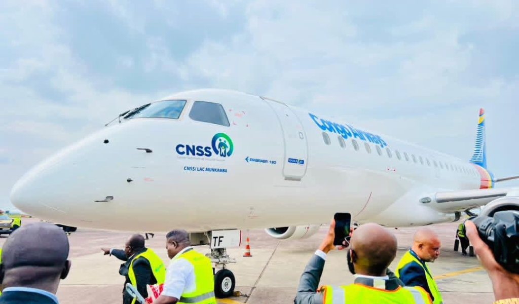 Le premier aéronef, un Embraer E-190, a atterri ce mercredi 24 décembre 2025 à l’aéroport international de Ndjili, en présence du Directeur Général de la CNSS-RDC, Charles Mudiay Kazadi, le représentant du Portefeuille, ainsi que le staff dirigeant de Congo Airways.