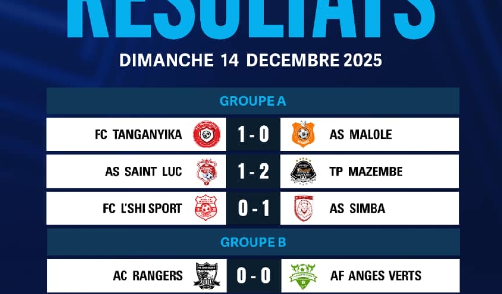 Trois rencontres se sont joués; à kalemie au stade joseph Kabila le FC tanganika a dominé l‘association sportive Malole du Kasaï central par la note d‘un but à zéro, l‘unique réalisation du joueur Milongo Ramazani inscrit sur penalty à la 45eme minutes de jeu, avec ce résultat Malole est 3eme au classement provisoire avec 18 points pour 10 sorties, alors que le FC tanganika grimpe à la 11eme place pour 11 sorties ; dans un duel 100% haut kanangais l‘As Simba l‘a emporté devant Lubumbashi Sport par la note d‘un but à zéro, but de Richard Kazadi inscrit à la 9eme minutes de jeu.