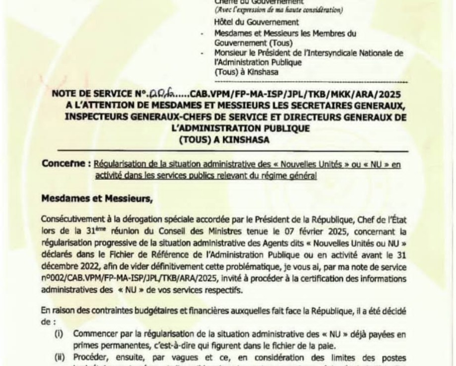 POLITIQUE : Felix séjourne à Brazzaville pour une mission de travail. 24 Janvier 2026Ils s‘observe depuis un temps une perturbation des activités dans la circulation des personnes et de leurs biens,sur les revieres Kalala butaka, Muana Musulu, et Muanza Ngoma dans le village Bikuku Kalea ,sur l‘axe Bakua kasanzu , secteur de Diofwa dans le territoire de Demba. Selon la source qui livre cette information,les petits ponts en bois jetter sur ces trois rivières sont actuellement dans un état de délabrement très avancé,la situation qui rend difficile la circulation des personnes et de leurs biens, surtout qui touche à l‘économie de cette partie du territoire en bloquant les échanges économiques entre les populations sœurs. Face à cette situa [..]