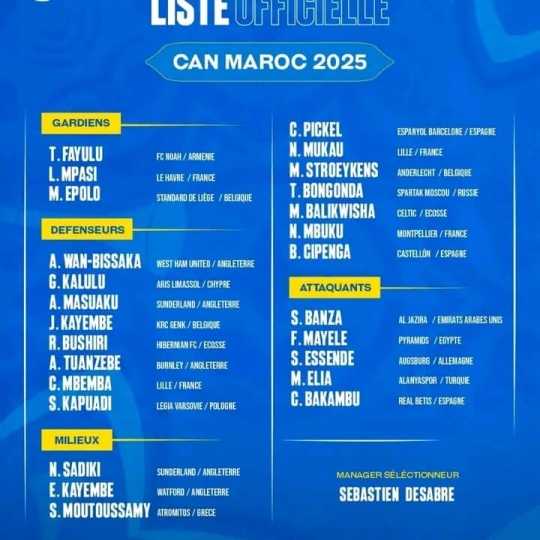 CAN 2025: La RDC enfonce le Botswana, l‘Algérie en alerte. 31 Décembre 2025Ce vendredi 23.01.2026, le Gouverneur de la province du Kasaï Oriental Mr Jean Paul Mbwebwa a, sur son invitation, reçu Mr Emmanuel Kande et un expert technique de la CAF. Au menu de leurs échanges, tout à tourné autour des solutions adéquates pour redonner au Stade Kashala Bonzola de Mbuji-Mayi une nou[..]