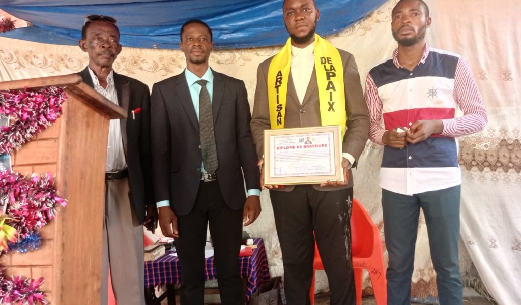 L’apôtre Dieuriche Kabadile, responsable de l’église Centre missionnaire Montagne Sainte de Ndesha, a été élevé au rang d’« artisan de la paix » et honoré d’un diplôme de bravoure par le Club des Journalistes Pacificateurs pour le Développement (CJPD), ce dimanche 15 mars 2026 à Kananga.