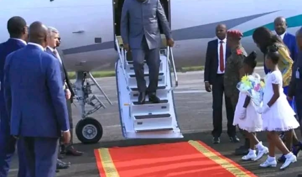 Au pied d‘avion le premier citoyen du pays était accueillis par le gouverneur de la province, députés et sénateurs,et d‘autres personnalités venus pour la circonstance.
